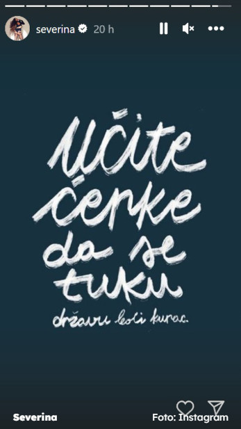 Za kraj je podijelila citat srbijanske umjetnice Valentine Talijan, koja već nekoliko dana kruži društvenim mrežama: “Učite kćerke da se tuku. Državu boli ku*ac.”