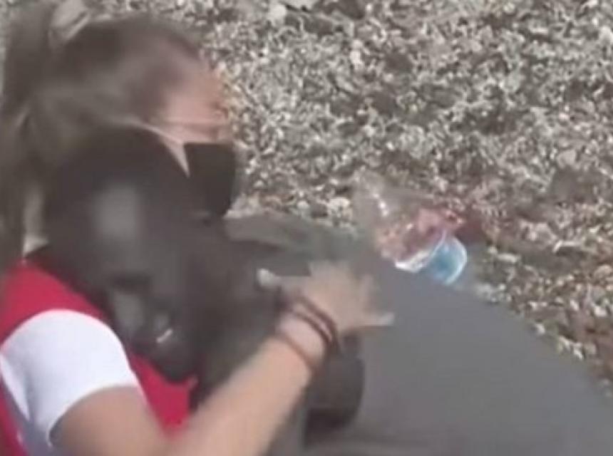 Luna, 20-godišnja volonterka Crvenog križa, na pješčanoj plaži sa španske strane žičane ograde davala je bočicu vode uplakanom migrantu.