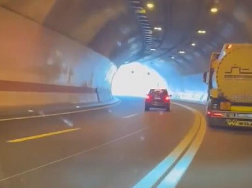 Na Facebook stranici "Prometne zgode i nezgode" objavljena je snimka vozača koji u tunelu na autocesti A1, kod izlaza za Ploče, u Hrvatskoj jurca u suprotnom smjeru.
