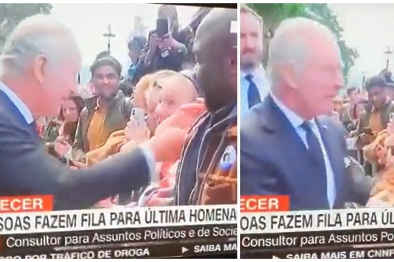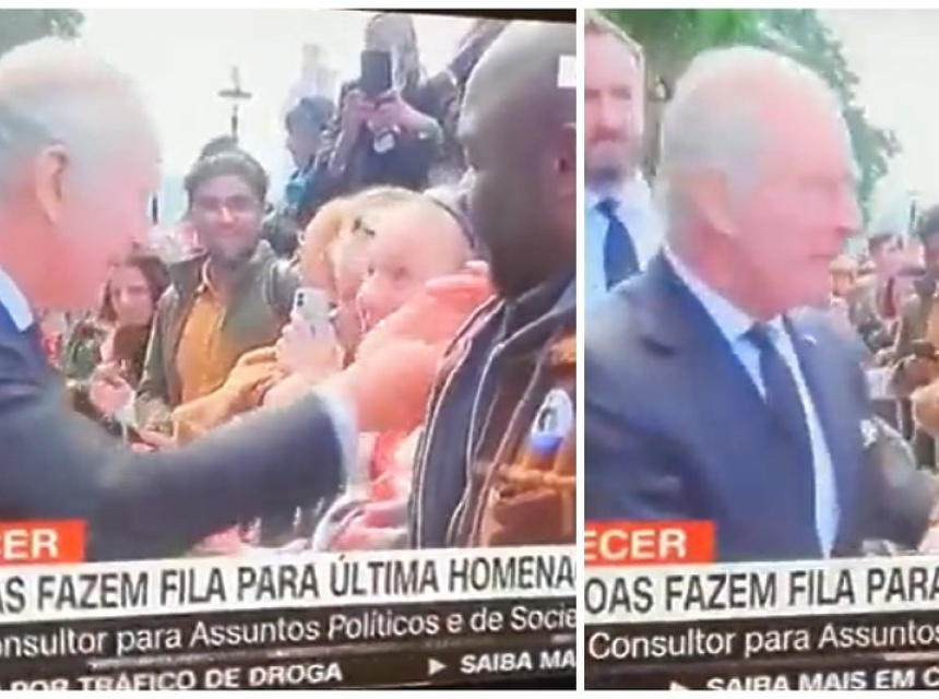 Charles se rukovao sa svima koji su bili prisutni, a onda preskače tamnoputog muškarca ispred sebe. Na snimci se vidi kako ga muškarac pokušava uhvatiti za ruku, ali ga Charles oštro odgurne bez da ga pogleda.