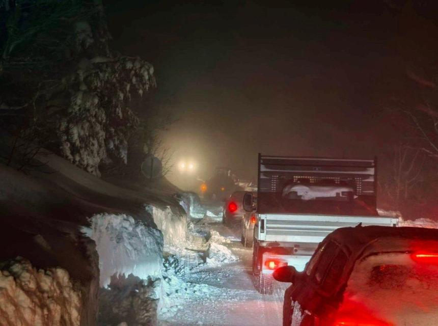 DRVAR - Situacija na putnom pravcu Drvar-Bosanski Petrovac, gdje su zametene kolone automobila, i dalje je teška. Mašine čiste snijeg ispred automobila, a u koloni je i kombi sa putnicima koji putuju iz Njemačke za Livno, rekao je Srni Darko Rujević, koji je u ovoj koloni cijeli dan.
