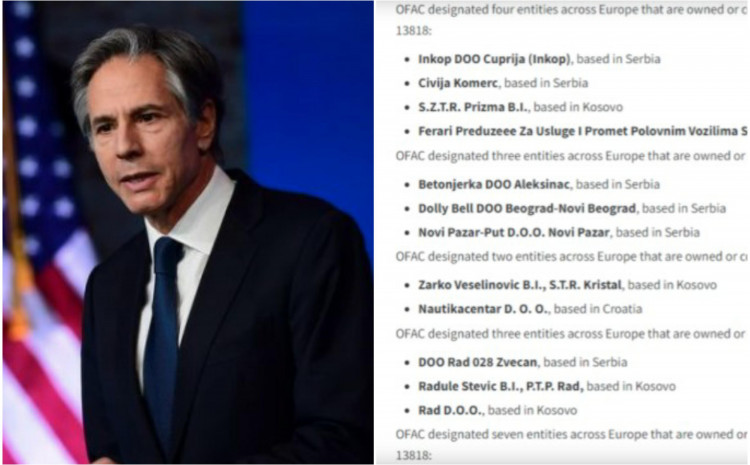 Državni sekretar i savjetnik američkog predsjednika Džoa Bajdena (Joe Biden), Entoni Blinken (Antony) saopćio je kako je sankcijama obuhvaćeno 16 pojedinaca i 24 "entiteta", primarno kompanije u privatnom i javnom vlasništvu.