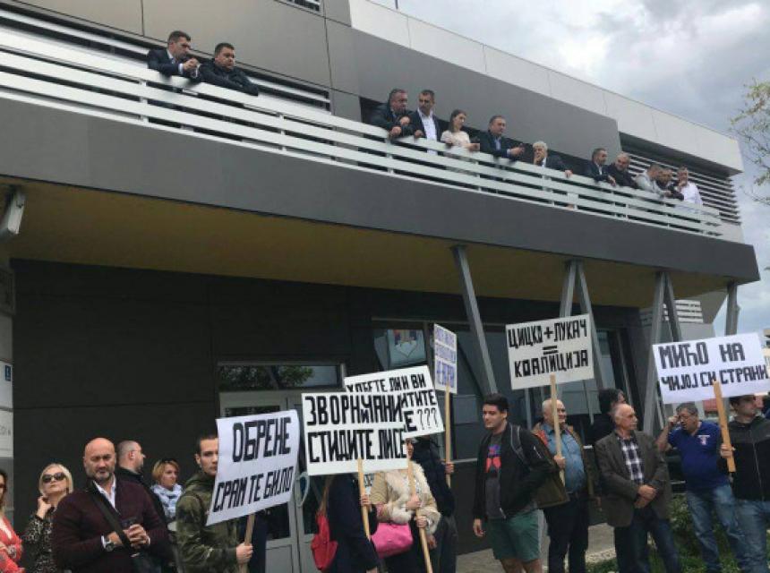 Okupljena masa koja je protiv saradnje sa SNSD-om pojedine članove Glavnog odbora izviždali su jer su se izjasnili da bi sarađivali sa SNSD-om kao što je Milovan Cicko Bjelica i Mićo Mićić.
