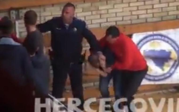 Zaštitar je pozvao policiju, a policija je na dosta grub način izbacila navijače iz dvorane.