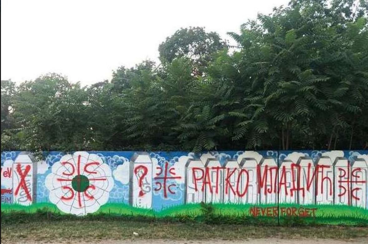 No, u subotu je preko grafita posvećenog Srebrenici napisano ime ratnog zločina Ratka Mladića i iscrtana su četiri ćirilična slova S.