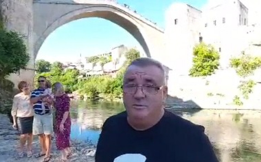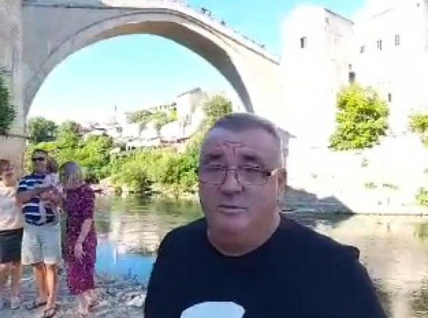 Skakač Harun Bajgorić u znak sjećanja na ubijenog Dženana, skočio je danas sa Starog mosta.
