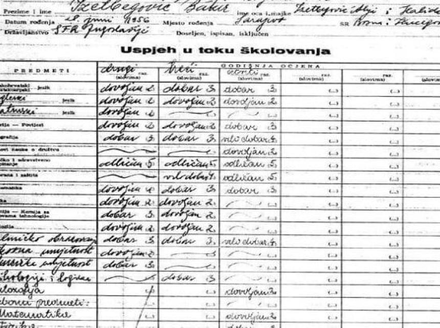 U javnost objavljujemo ocjene iz škole aktualnog člana predsjedništva BiH Bakira Izetbegovića.