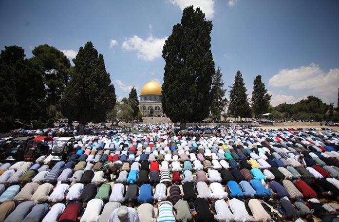 Nakon dugog putovanja i mnogo poteškoća, Palestinci su danas ispunili prostor unutar kompleksa džamije al-Aksa, a prema podacima Uprave za vakufe u Al-Qudsu, posljednji džuma-namaz u ovogodišnjem ramazanu klanjalo je oko 70.000 Palestinaca.