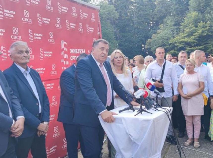 Dodik je morao da krikne i sam počne skandirati - SNSD, SNSD - ne bi li probudio uspavanu amorfnu masu, čuo neku povratnu reakciju nekolicine svojih pristalica.