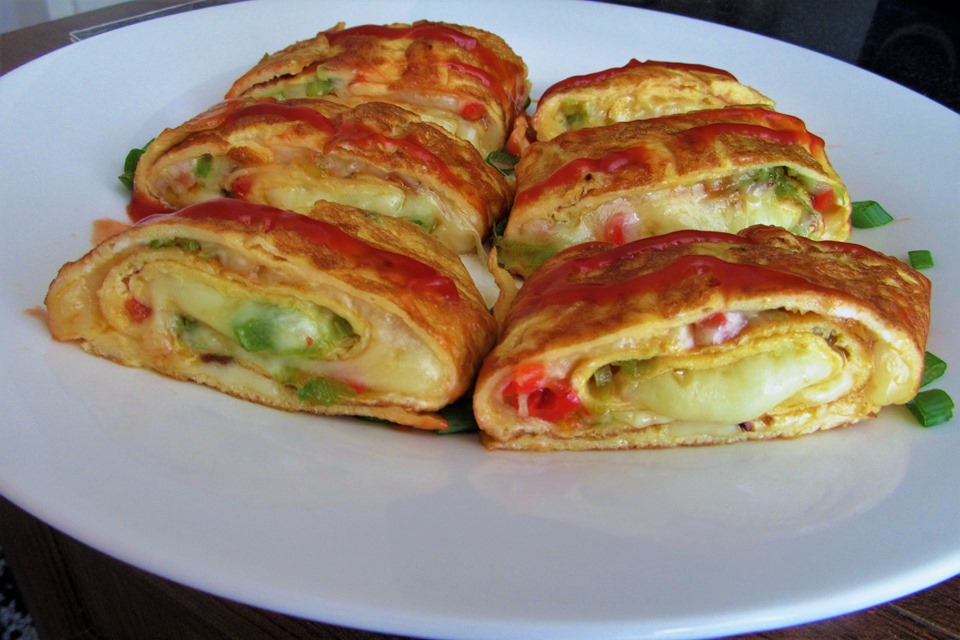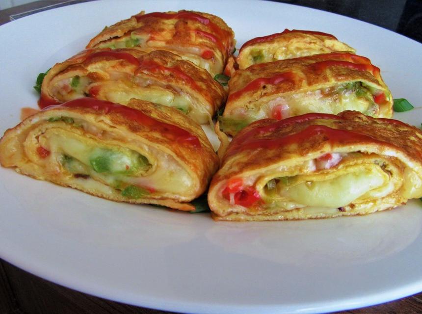 - Odmotati koru, pa je premazati polovinom smjese od sira, pavlake i majoneze. Preko staviti jaja, pa salamu i ostatak smjese. Po vrhu poredati sjeckane krastavce.