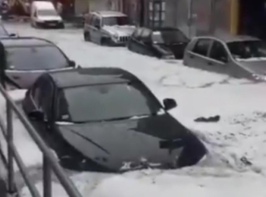 Na jednom od snimaka se vidi kako je Omladinska ulica u centru grada pretvorena u rijeku i kako se automobili jedva probijaju.