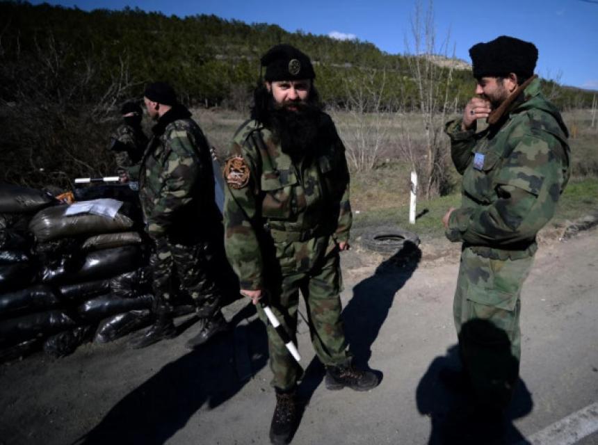 Srbi i Kozaci na kontrolnom punktu na cesti koja spaja Simferopol i Sevastopolj, na početku okupacije dviju pokrajina