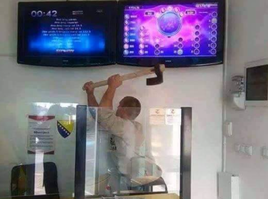 Naime, Policijskoj stanici Milići je oko 11.50 prijavljeno nepoznato lice, koje je, kako je navedeno, koristilo aparat za igre na sreću u sportskoj kladionici, te da se nakon kraćeg vremena od izlaska iz objekta, vratilo sa sjekirom i polupalo aparat.