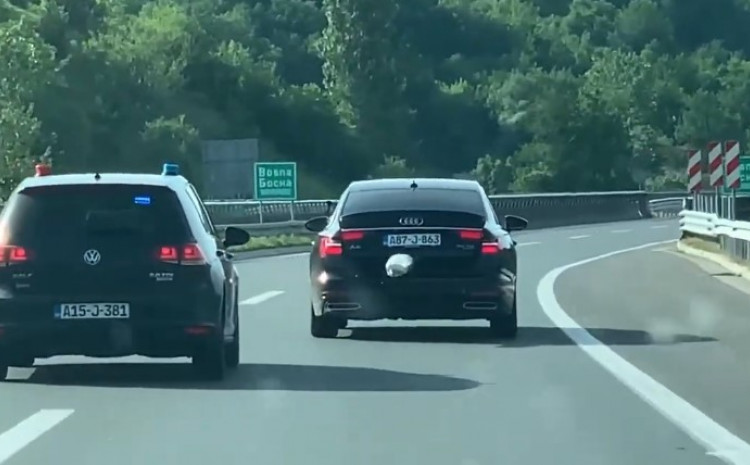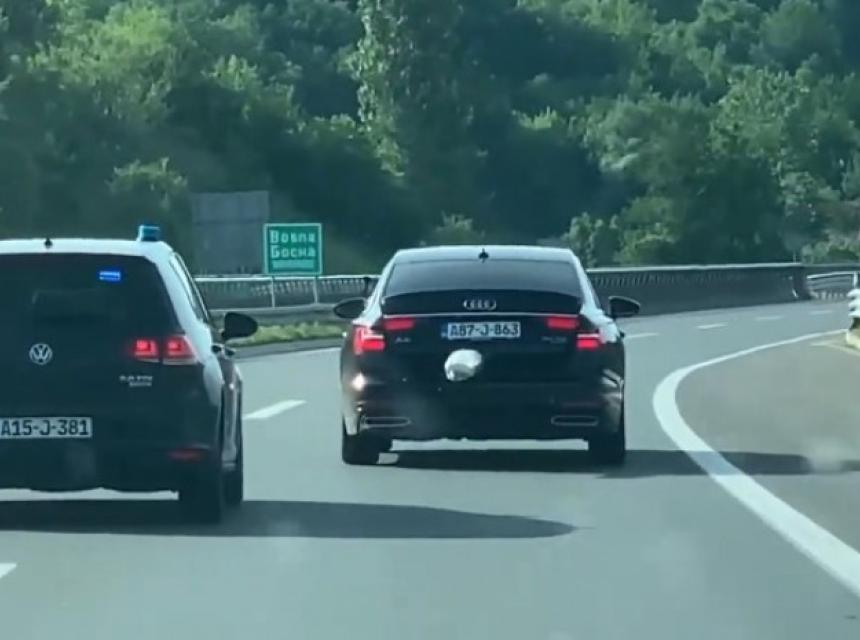 Na društvenim mrežama se pojavio snimak na kojem se vidi kako službeni Audi pod pratnjom ide autoputem, a iz gepeka mu viri tenda.