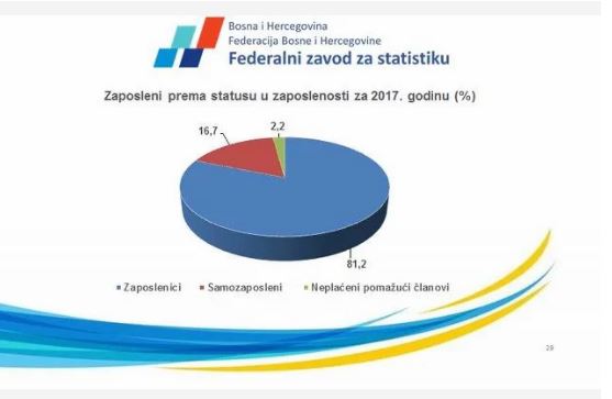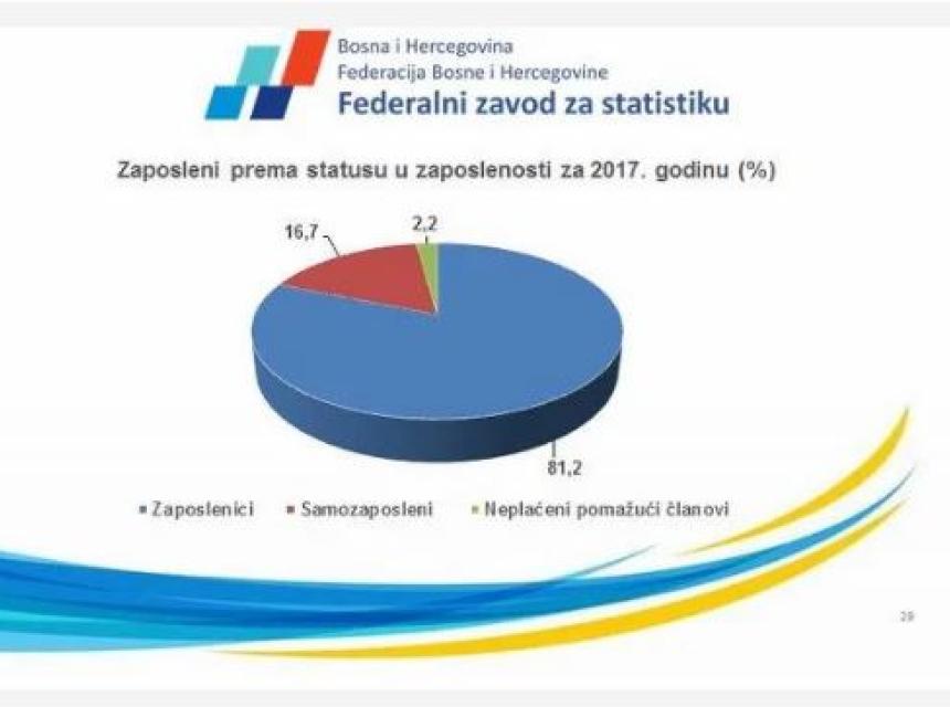 Ukupna stopa nezaposlenosti u 2017. godini na području Federacije BiH manja je za 5,6 posto u odnosu na 2016. godinu, odnosno 9,4 posto u odnosu na 2012. godinu.