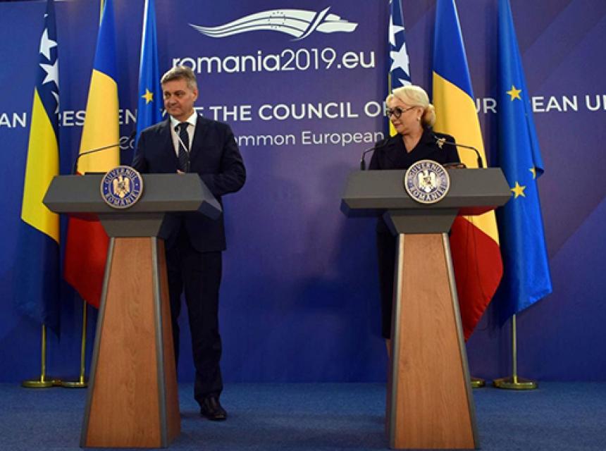Premijerka Dancila je čestitala Zvizdiću na postignutim impresivnim rezultatima Vijeća ministara BiH u posljednje četiri godine. Istaknula je da Rumunija snažno podržava euroatlantske integracije Bosne i Hercegovine i iskazala spremnost Rumunije da pruži političku i tehničku pomoć Bosni i Hercegovini kako bi se ubrzao evropski put BiH. Dodala je da Rumunija želi da jača i unapređuje saradnju sa Bosnom i Hercegovinom, posebno privrednu saradnju kroz povezivanje privrednih komora i poduzetnika. Istaknula je da je Zapadni Balkan dio Evrope, te da Rumunija podržava da BiH dobije status kandidata i da je jedino jamstvo trajnog mira, stabilnosti i ekonomskog razvoja regije članstvo u EU i NATO-u.