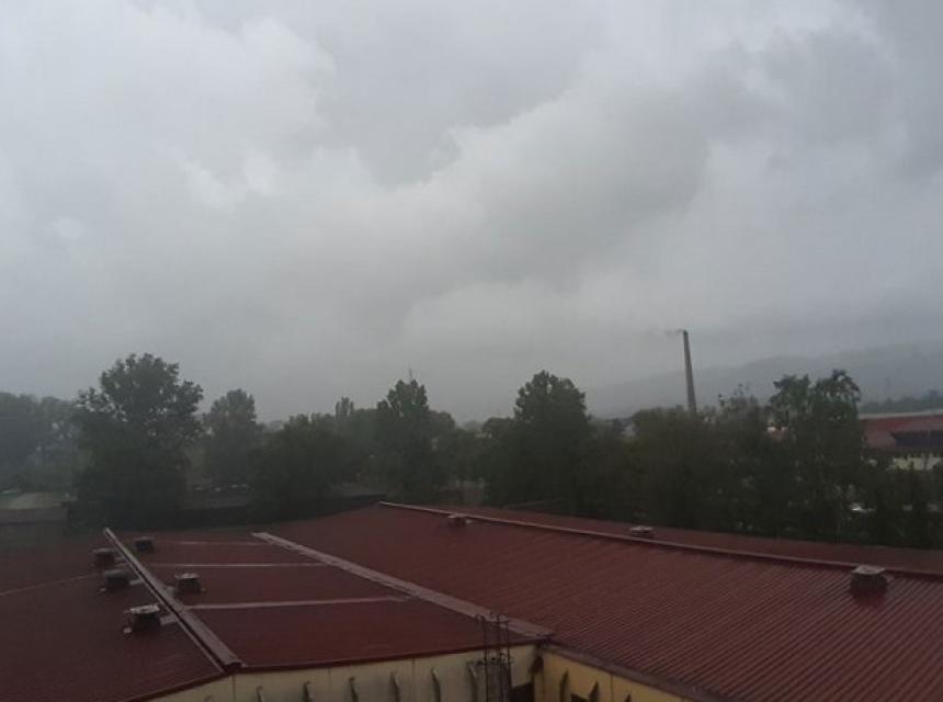 Nakon kraće naoblake počela je da pada jaka kiša praćena snažnim vjetrom i grmljavinom.