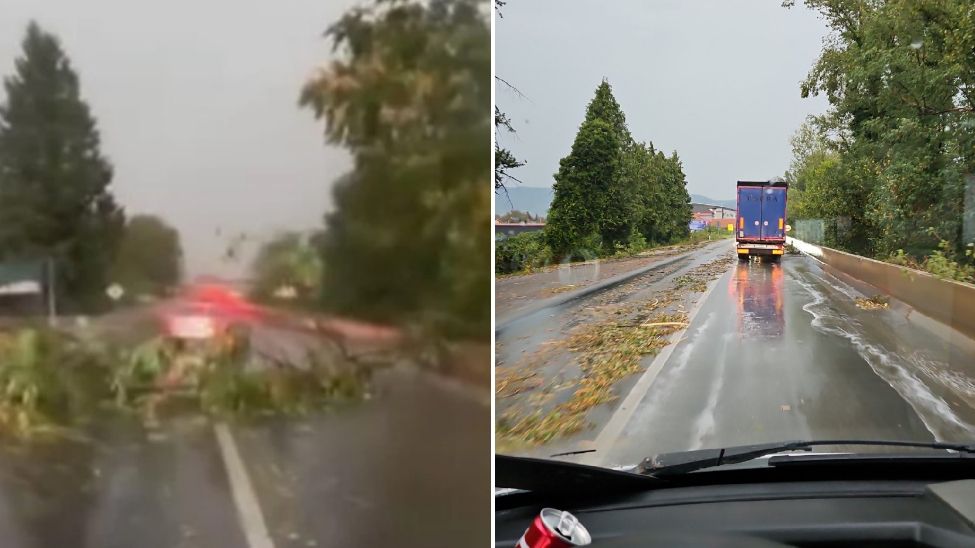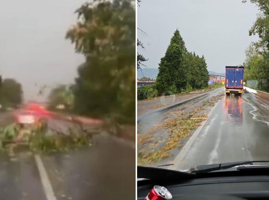 Snažan vjetar praćen jakom kišom lomio je stabla i grane, koji su padali na cestu. Zbog jake kiše pojedini vozači bili su primorani da naprave pauzu u vožnji.