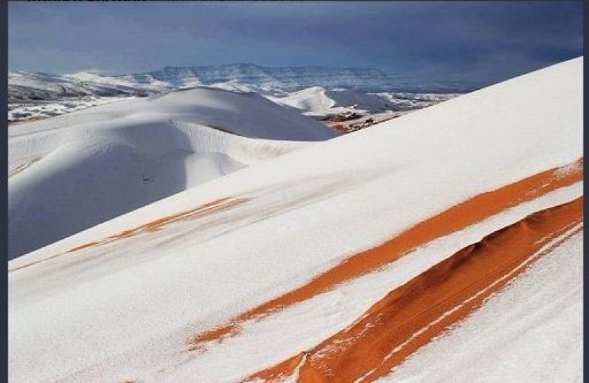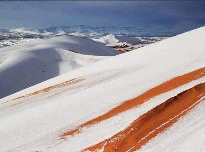 Stanovništvo Ain Sefre, malog alžirskog mjesta, drugi put ove godine iznenadio je snijeg. Pješčane dine ponovo je prekrio sneg, što je djecu, ali i one starije, oduševilo. Nakon 37 godina snijeg je prvi put pao u decembru 2016. godine, a nakon toga još tri puta.