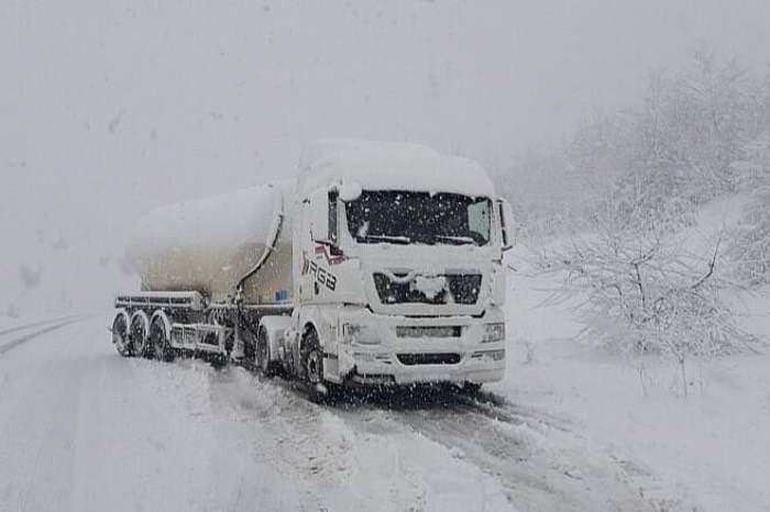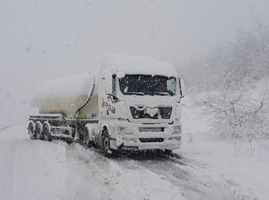 Na magistralnom putu Ključ – Bosanski Petrovac, na prevoju Lanište, nekoliko kamiona je zaglavljeno zbog snažnog snijega koji pada, otežavajući prolaz i onemogućavajući vozačima da pređu prevoj.