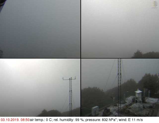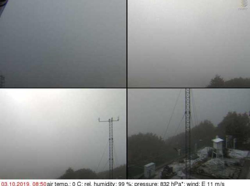 Na Zavižanu je izmjerena temperatura od 0 stupnjeva, a počeo je padati i snijeg. Kako se vidi sa snimke web kamera, snijeg je počeo padati na Zavižanu, a mogao bi početi padati i na Učkoj.