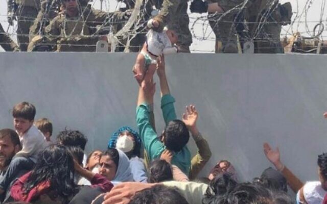 Ispred međunarodnog aerodroma Hamid Karzai u Kabulu gomila Afganistanaca se okupila kako bi pokušala ući na aerodrom koji je pod kontrolom grupe američkih marinaca.