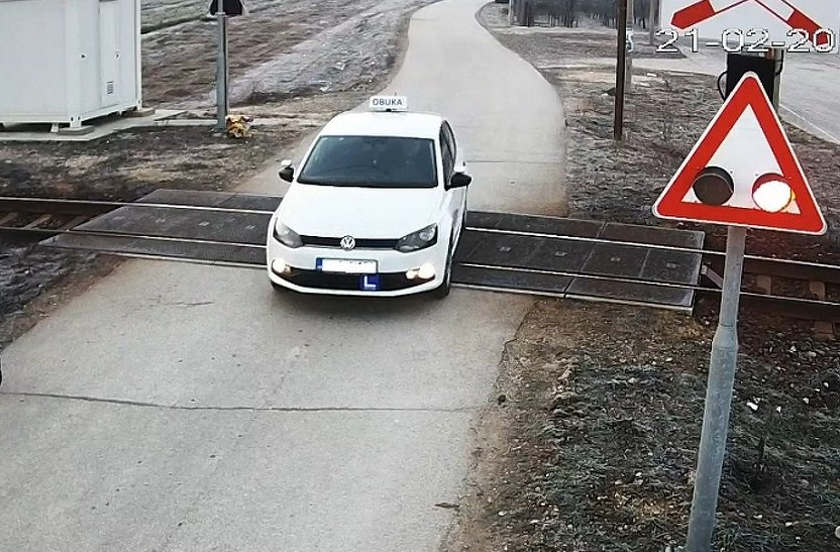 Iako upaljena signalizacija znači da će voz uskoro proći, na snimku se može vidjeti kako automobili, kombiji i kamioni prelaze preko pruge, a neki čak i ruše rampe kako bi prošli.