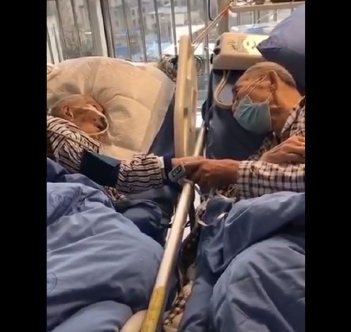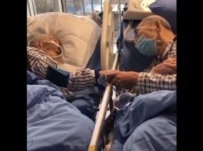 Dirljiva snimka dvoje staraca zaraženih koronavirusom koji se opraštaju iz svojih bolničkih postelja, lica prekrivenih maskom, počela se širiti društvenim mrežama.