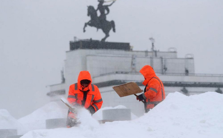 Obilne snježne padavine zatrpale su Moskvu golemim snježnim nanosima prekidajući saobraćaj, odgađajući letove i otežavajući hodanje pješacima koji su prkosili snažnom vjetru i temperaturama do minus 15 stepeni.