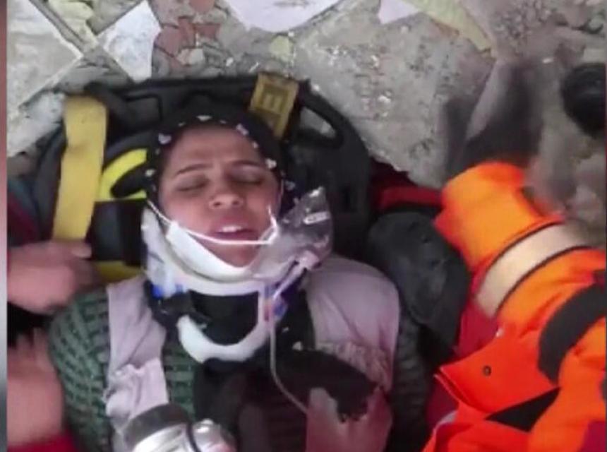 Žena je spašena nakon što je s njom, dok je bila ispod ruševina, telefonom razgovarala članica medicinske ekipe, koja joj je davala upute kako da se ponaša da bi preživjela.