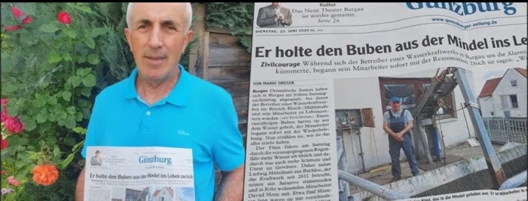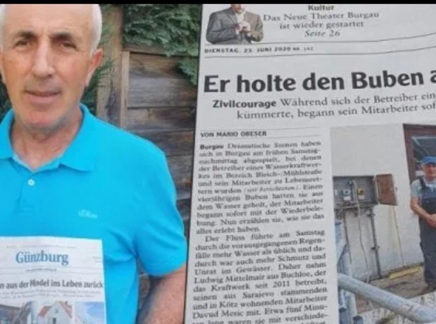 U njemačkim medijima ovih dana pisalo se o hrabrom i herojskom činu Sarajlije Davuda Mešića, a ono što je ovaj čovjek učinio definitivno se i ne može drugačije okarakterisati nego herojski. Bili su to dramatični momenti na radnom mjestu Mešića, koji je trogodišnjeg dječaka praktično spasio od sigurne smrti. Mešić radi na održavanju hidrocentrale u malom njemačkom gradu Burgauu, u okrugu Gunzburg, saveznoj državi Bavarska. Prošlog vikenda je zajedno sa šefom obavljao redovnu kontrolu hidrocentrale i tom prilikom su u vodi primijetili nešto neobično, u prvom momentu im se učinilo kao lutka, no shvatili su da je to zapravo dijete. Mešić je uspio brzo izvući dječaka iz vode, koji nije davao znakove života. Nakon višeminutne masaže srca i umjetnog disanja, dječak je proplakao i uspješno vraćen u život. Ovaj hrabri čin 66-ogodišnjaka iz Sarajeva prvi je objavio njemački dnevni list “Augsburger Allgemeine”, za koji je Mešić poručio kako sebe uopće ne smatra junakom, već čovjekom koji je učinio ono što je bila njegova obaveza.