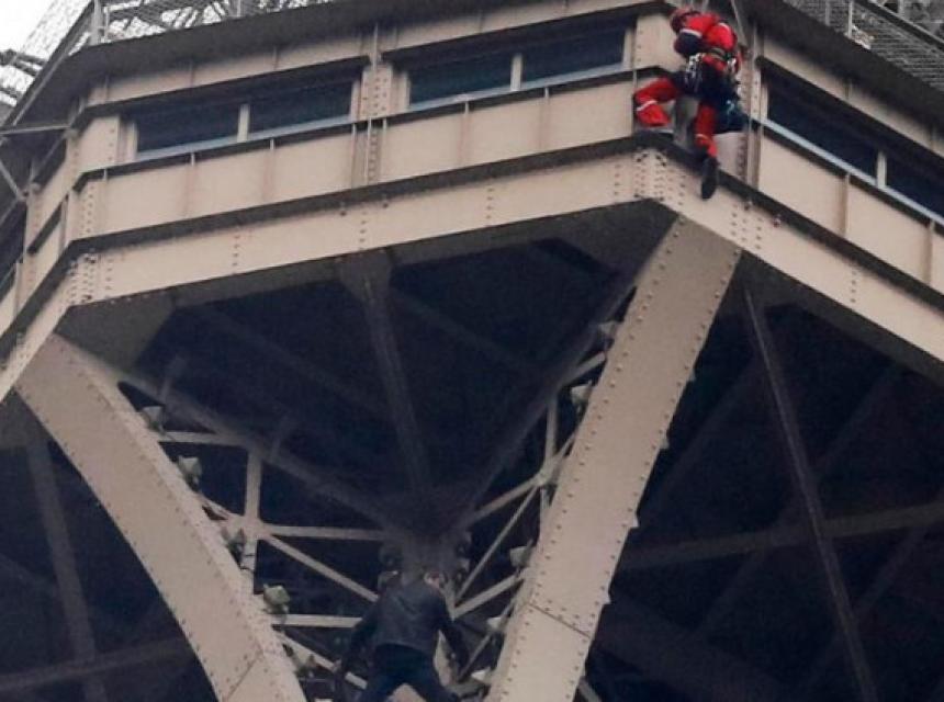 Spasioci pokušavaju da ubijede nepoznatog muškarca, koji se danas popeo na Ajfelov toranj, zbog koga je kula i evakuirana, da se spusti.