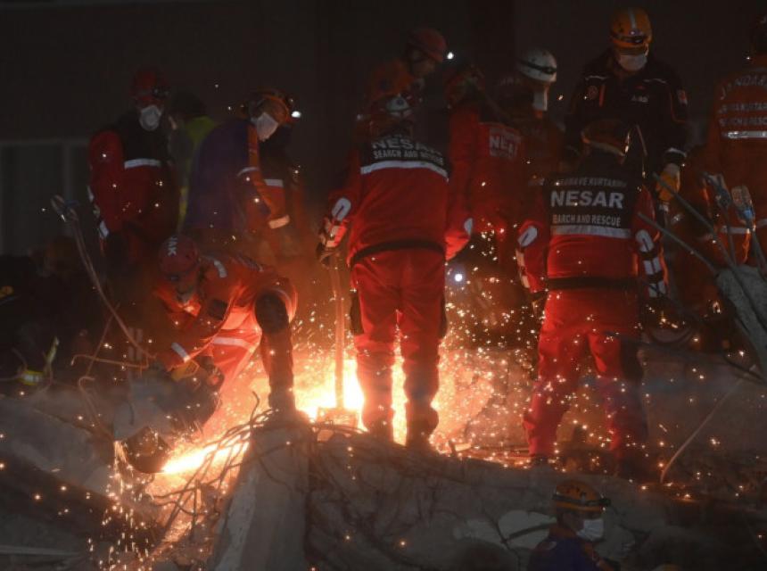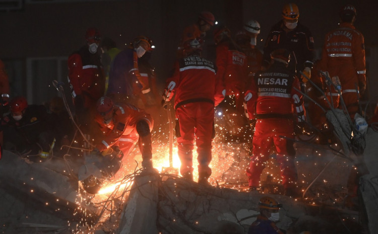 Uz svjetla reflektora i buku bagera spasilačke ekipe raščišćavale su gomile betona i greda u Bajrakliju, u okolici Izmira, dok su ih promatrali zabrinuti stanovnici, izvijestila je novinarka agencije AFP.