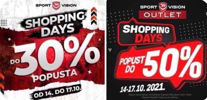 Popusti do ▶️30% čak i na novu kolekciju, čekaju te u svim Sport Vision multibrend radnjama, kao i do ▶️50% u Outletima.