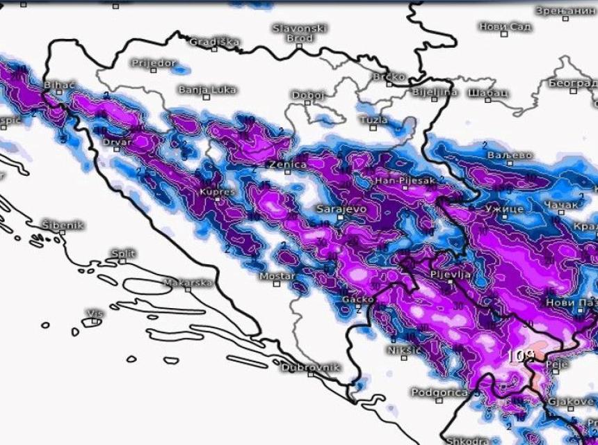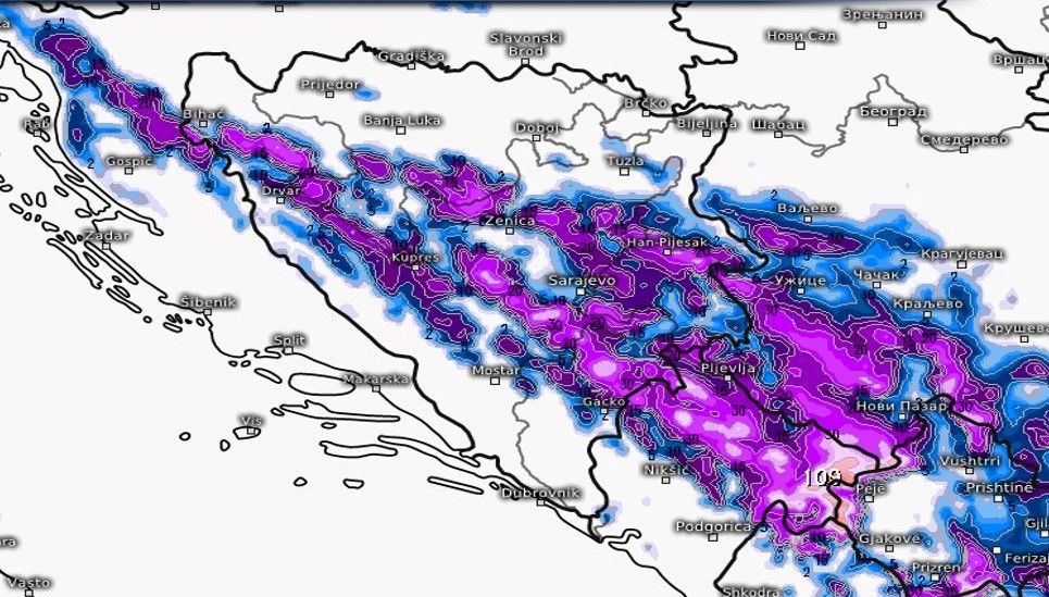 -Večeras i za vikend obilne snježne padavine na planinama. Prvenstveno u krajevima iznad 1500mnv gdje se očekuje u prosjeku 15-30 cm novog snijega.