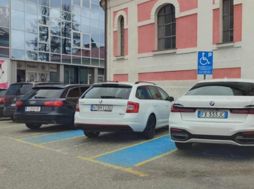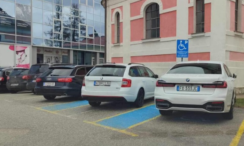 Naime, na fotografiji se vidi više automobila stranih registarskih oznaka parkiranih na mjesta predviđeno za osobe s invaliditetom.
