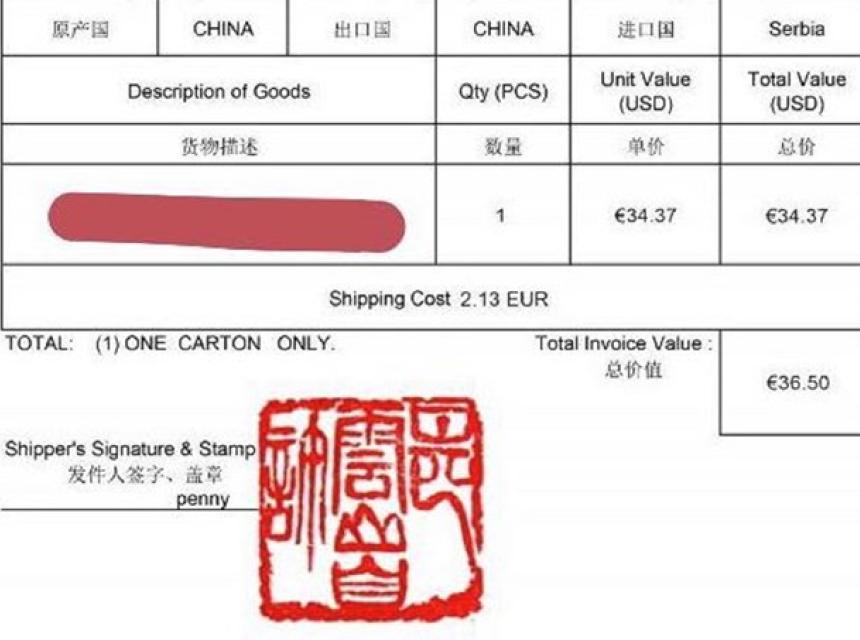DARKO VIDIĆ iz Srbije na Facebooku je opisao poprilično bizaran slučaj u kojem srpski carinici nisu htjeli cariniti robu iz Kine jer na dokumentu nije bilo žiga, zbog čega je domišljati poduzetnik s interneta kopirao pečat kineske dinastije Ming (1368. - 1644.) te ga zalijepio na fakturu, nakon čega su mu robu carinili i pustili u državu.