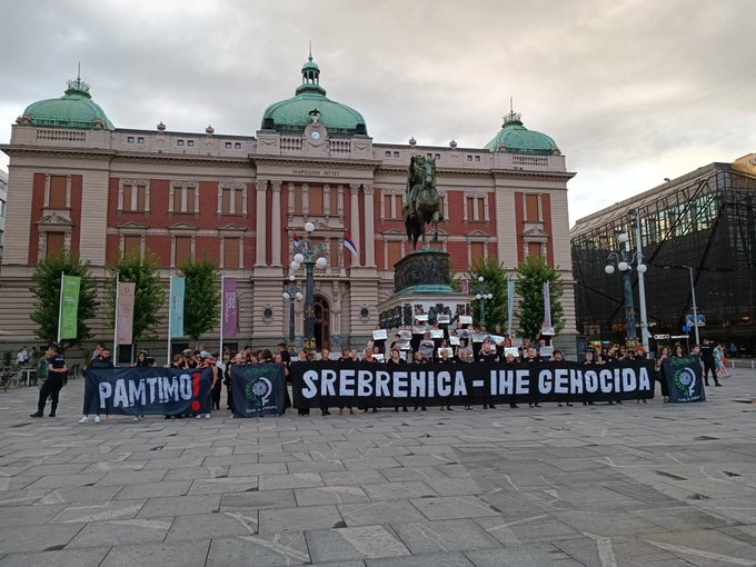 Danas se u centru Beograda pojavio transparent sa natpisom 'Srebrenica – ime genocida' kojeg su razvili aktivisti Fonda za humanitarno pravo u znak sjećanja na žrtve genocida.