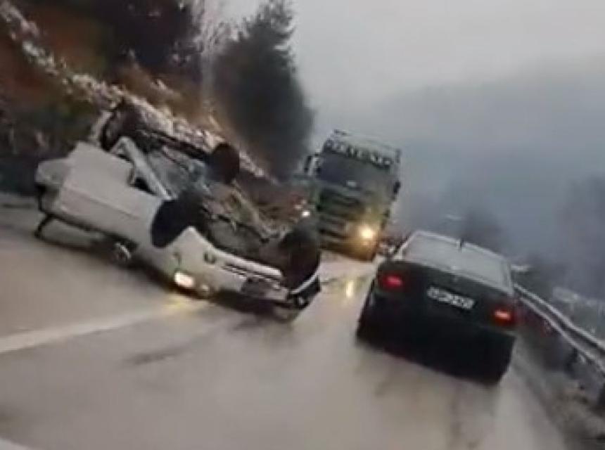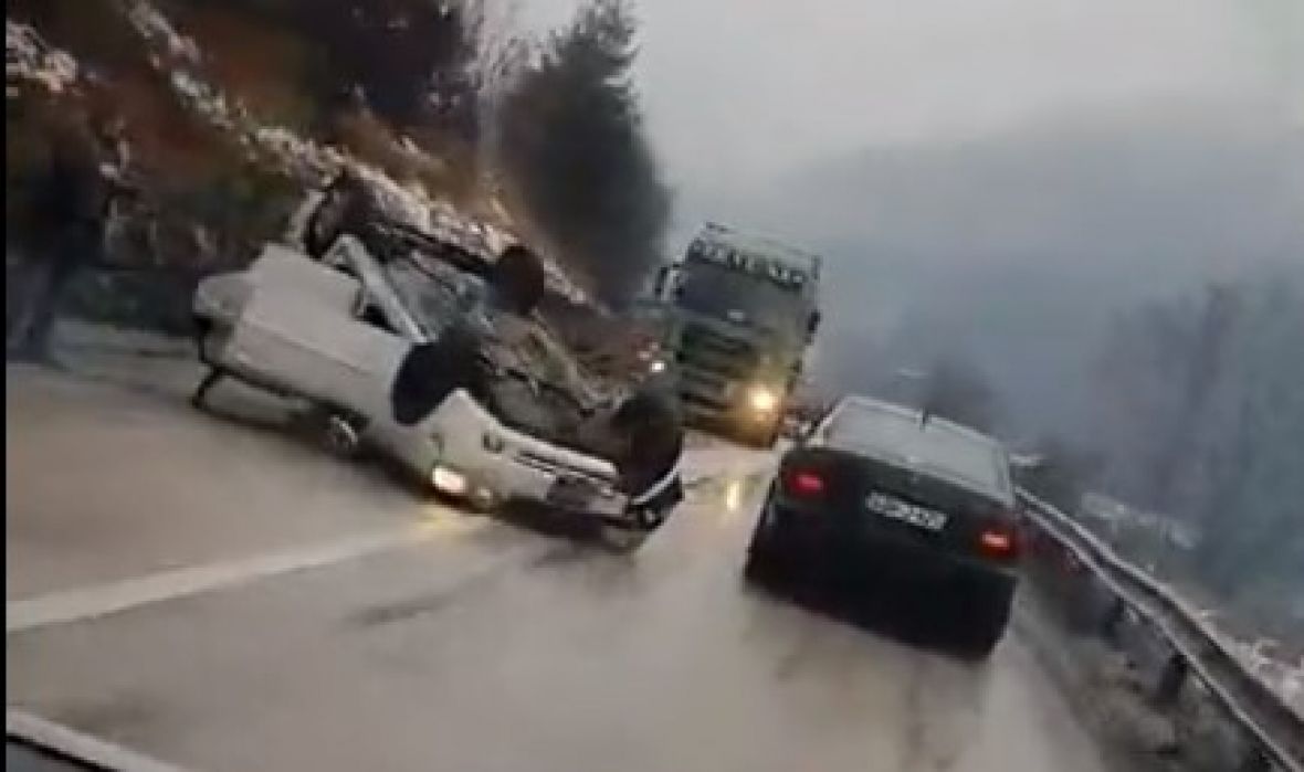 U saobraćajnoj nesreći koja se dogodila u Srednjem u blizini Sarajeva, jedan automobil se prevrnuo i završio na krovu.