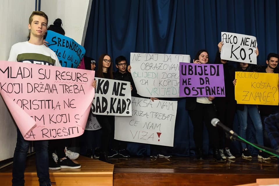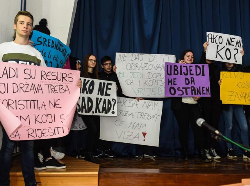 "Imamo milion razloga da odemo, a samo jedan da ostanemo. Taj jedan je ljubav prema našoj domovini. Koliko ćemo još iz škole na biro za zapošljavanje, pa na granicu? Da li vas je strah koliko će nas otići? Da li imate strategije kako nas zadržati? Da li ste našli bilo kakvo rješenje koje bi nas moglo zadržati?"