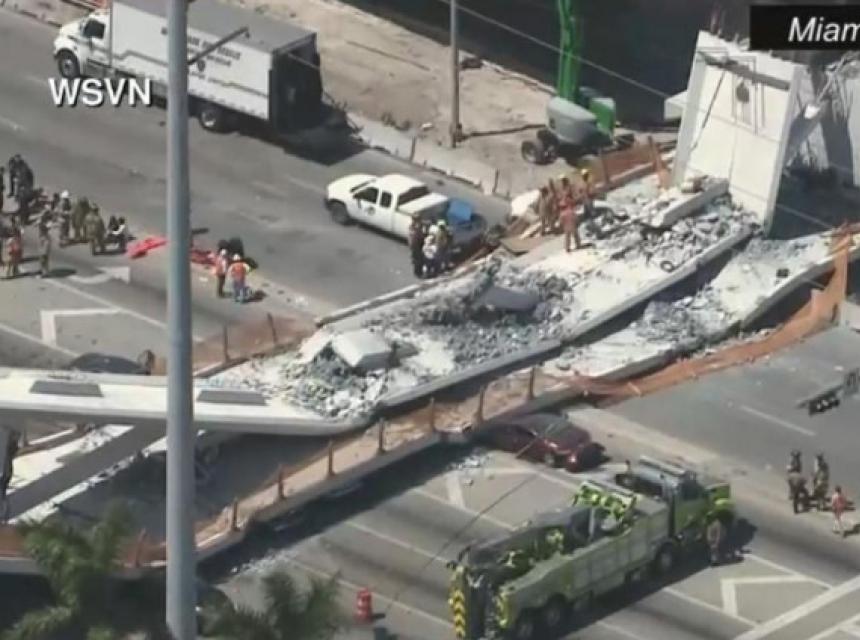 Pješački most preko Jugozapadne osme ulice u Majamiju srušio se danas poslijepodne. Gomila urušenog betona zarobila je pješake i ljude u automobilima koji su se u tom trenutku našli ispod mosta.