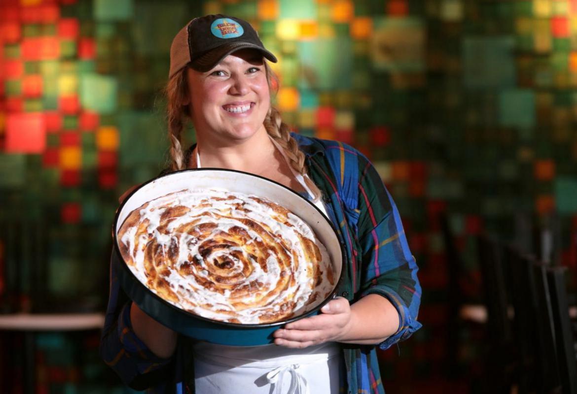 Naslovna fotografija: Loryn Nalić sa tepsijom sirnice, ‘bosanske verzije balkanske pite od sira’, kako je tumače Amerikanci. A da im se svidjela – očito jeste.