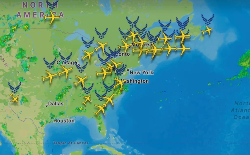 Na mapama koje su objavljene na internetu vidi se formacija američkih vojnih aviona kako prelazi Atlantik, krećući se prema istočnoj Evropi i Bliskom istoku. Zvanične informacije o njihovoj krajnjoj destinaciji za sada nisu saopštene.