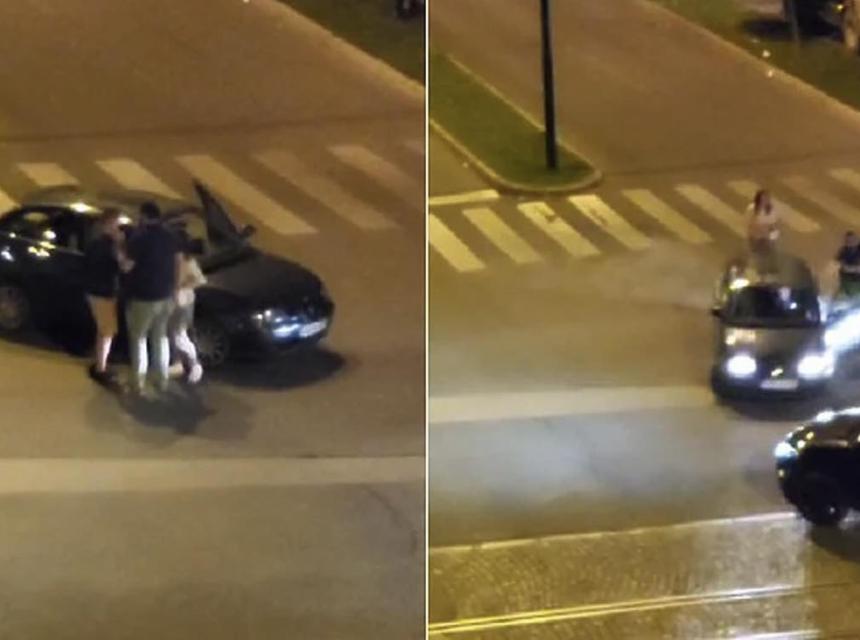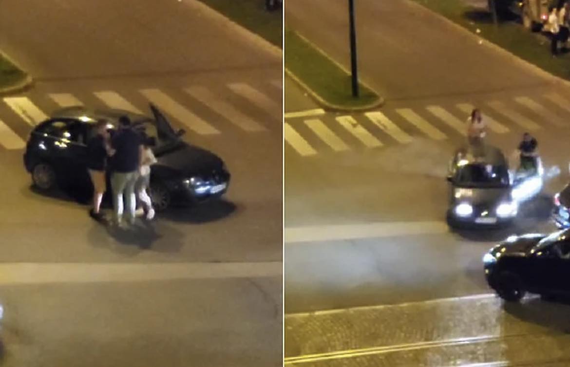 Na videu snimljenom večeras oko 22 sata vidi se kako se dva automobila zaustavila saobraćaj na raskrsnici u ulici Dr. Fetaha Bećirbegovića. Dva muškarca i jedna žena su izašli iz automobila nakon čega je uslijedio “pravi šou”.