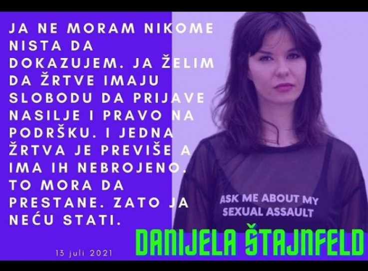 Štajnfeld je na svom Instagram profilu napisala da žrtve imaju pravo na slobodu, te da ona neće stati.