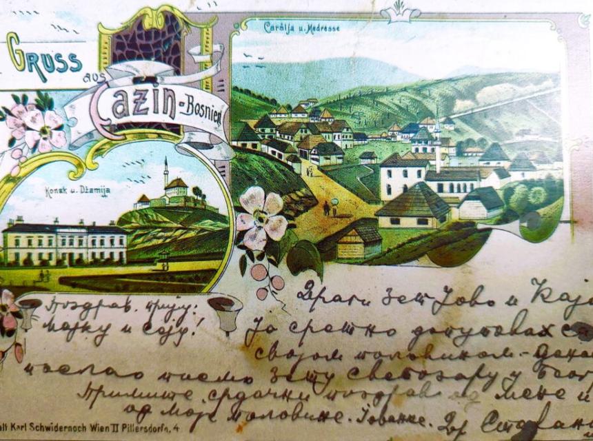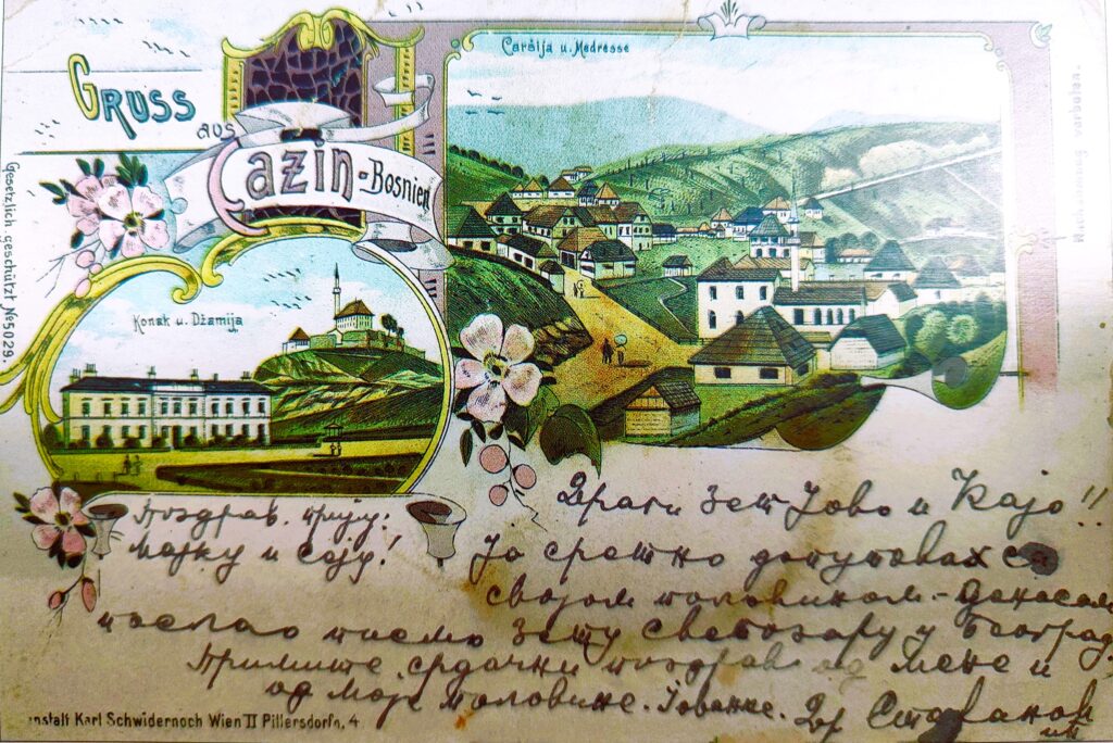 Jedna od prvih razglednica Cazina iz vremena austrougarske okupacije bila je štampana u Austriji.
