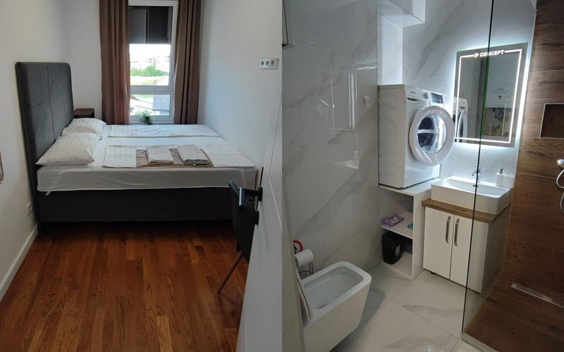 U kupatilu je veš mašina postavljena na povišenje pored lavaboa, zbog čega su mnogi komentarisali da se nadaju kako “mašina ima dobre amortizere”.