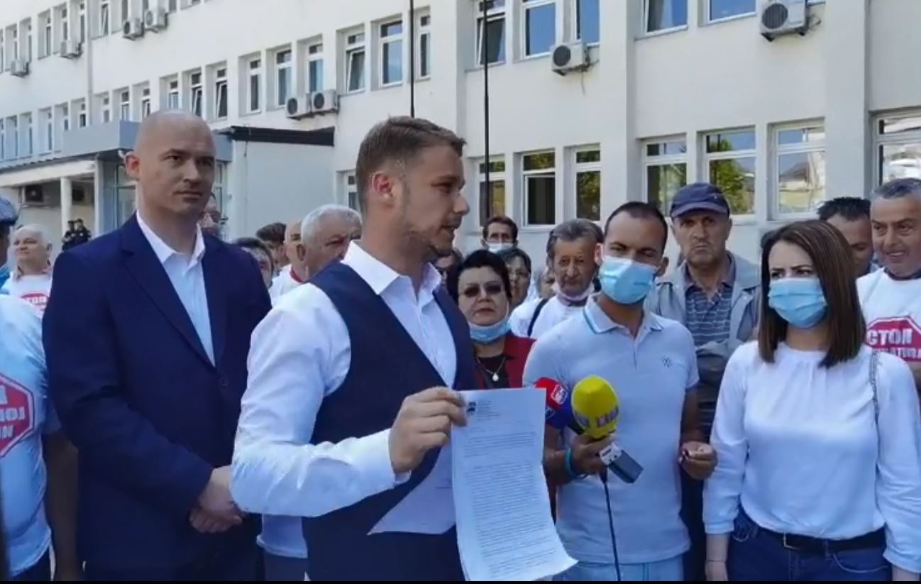 Uoči ispitivanja Stanivuković se obratio okpljenim građanima ispred zgrade policije.