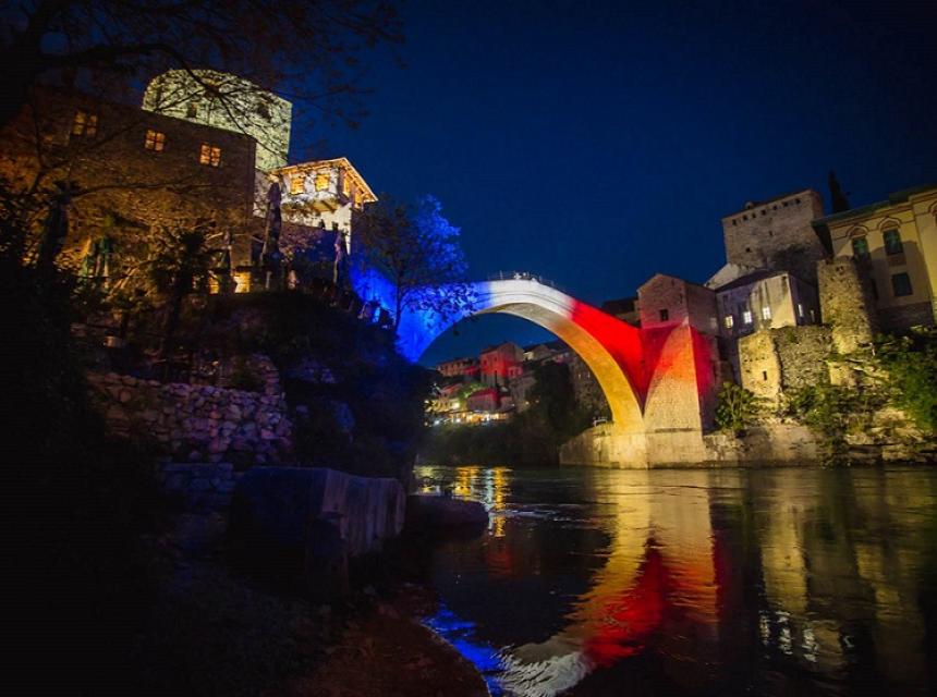 Stari most u Mostaru osvijetljen bojama francuske zastave