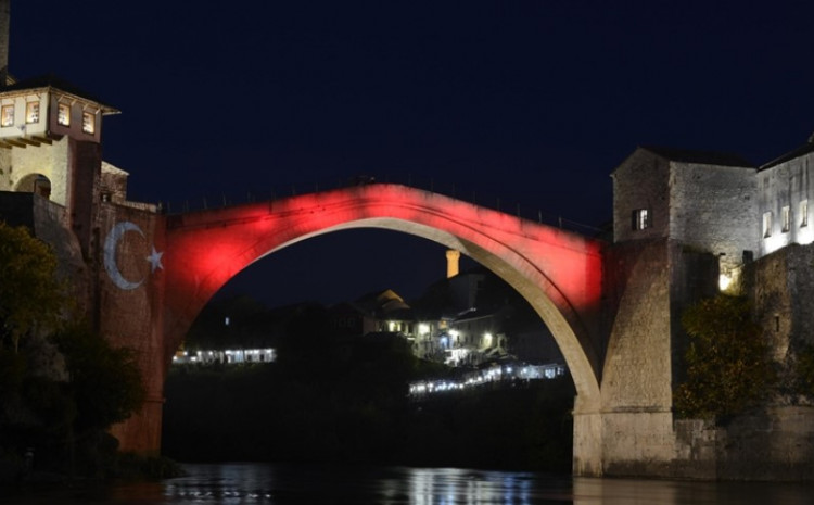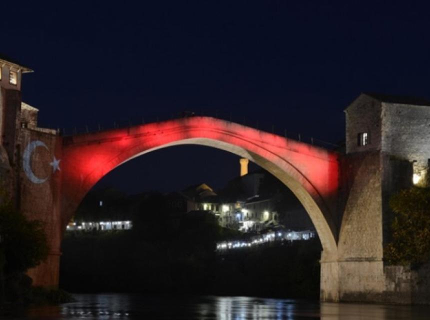 Stari most u Mostaru večeras je osvijetljen bojama zastave Republike Turske u sklopu svečanosti obilježavanja 98. rođendana te zemlje, koji je u najvećem hercegovačkom gradu organizovao Generalni konzulat Republike Turske u Mostaru.